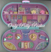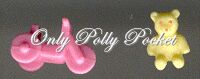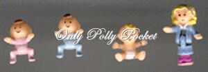 - Polly Pocket, blonde waved hair with light purple hair band, light blue long-sleeved dress with buttons, white collar, pink shoes (1994)
